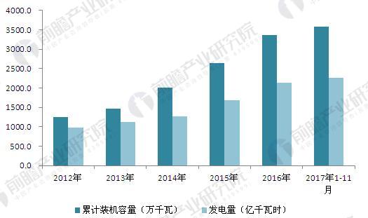 與此同時(shí),風(fēng)電裝機(jī)容量也快速增長(zhǎng)。截至2017年11月,我國(guó)風(fēng)電累計(jì)裝機(jī)容量達(dá)18121萬(wàn)千瓦,其中2017年新增容量為1252萬(wàn)千瓦。
