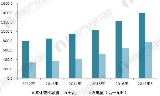 圖表5:2012-2017年生物質(zhì)能發(fā)電裝機(jī)容量與發(fā)電量情況(單位:萬(wàn)千瓦,億千瓦時(shí))