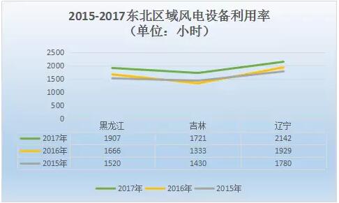 從風電設(shè)備利用率來看,2017年東北區(qū)域的棄風限電問題得到了明顯好轉(zhuǎn)。黑龍江、吉林、遼寧2017年風電設(shè)備利用小時數(shù)分別為1907小時、1721小時、2142小時,同比增長14.5%、29.1%、11.0%。