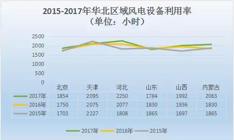 從風電設(shè)備利用率上看,華北區(qū)域除了山東略有小幅下降外,其他地區(qū)都有所提升,可見華北地區(qū)的棄風問題也得到了相應(yīng)的緩解。河北、天津、內(nèi)蒙古風電設(shè)備利用小時數(shù)分別為2250小時、2095小時、2063小時。