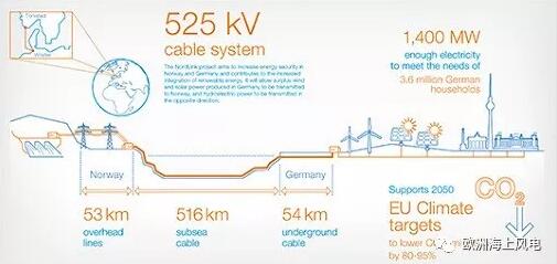 線路計劃于2020年啟用,屆時,德國的風(fēng)電、光伏將與挪威的水電聯(lián)系在一起,使兩國的可再生能源電力市場更加健康、穩(wěn)定。