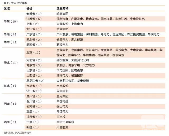 根據(jù)WIND統(tǒng)計數(shù)據(jù),截至2017年3月10日,電力行業(yè)共有916支存量債券,涉及174家發(fā)債主體。我們以此為基礎(chǔ),依據(jù)以下標(biāo)準(zhǔn)對發(fā)債主體做進(jìn)一步篩選:(1)企業(yè)以火電業(yè)務(wù)為主;(2)財務(wù)數(shù)據(jù)披露較為齊全;(3)原則上涵蓋五大電力集團(tuán)或其主要子公司、各省能源平臺及地方主要發(fā)電企業(yè)。最終我們選出52家電力企業(yè),涵蓋7大區(qū)域、22個省份(自治區(qū))。