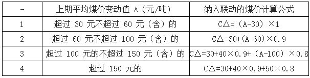 納入聯(lián)動(dòng)的煤價(jià)計(jì)算公式