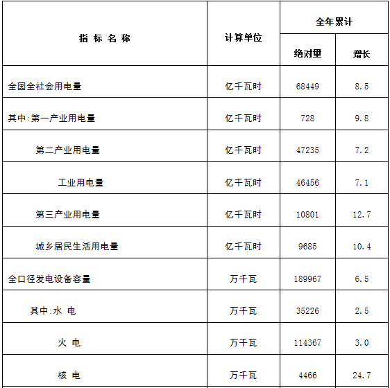 全國(guó)電力工業(yè)統(tǒng)計(jì)數(shù)據(jù)一覽表