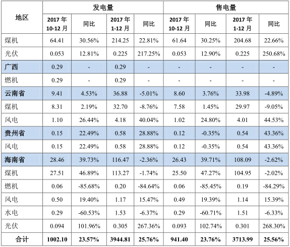 華能國(guó)際2017年全年發(fā)電量完成情況公告
