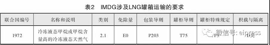 IMDG 是一部關(guān)于包裝危險(xiǎn)貨物或固體散裝危險(xiǎn)貨物運(yùn)輸?shù)膹?qiáng)制性國(guó)際規(guī)則,其涉及貨物分類、包裝、托運(yùn)程序及運(yùn)輸作業(yè)等相關(guān)規(guī)定。通過(guò)梳理,涉及 LNG 罐箱運(yùn)輸?shù)囊笕绫?2 所示。