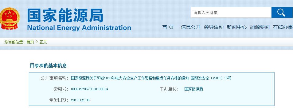 國家能源局印發(fā)《2018年電力安全生產(chǎn)工作思路和重點(diǎn)任務(wù)安排》
