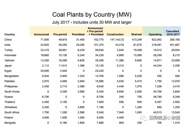 根據(jù)ENDCOAL ORG的全球煤電追蹤系統(tǒng)的數(shù)據(jù),2017年7月份全球共有76個(gè)國(guó)家和地區(qū)擁有在運(yùn)的煤電廠(30兆瓦以上),總裝機(jī)容量為1,965 3吉瓦
