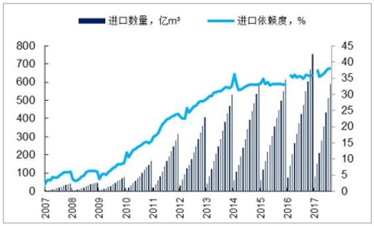 天然氣進(jìn)口量和進(jìn)口依賴度不斷提升
