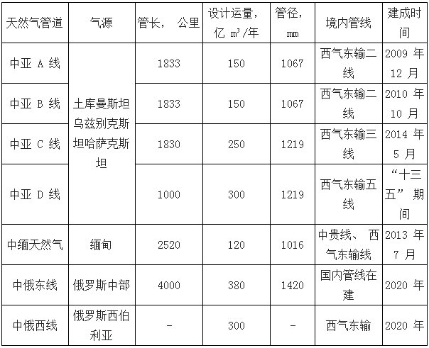 中國七大天然氣進(jìn)口管道