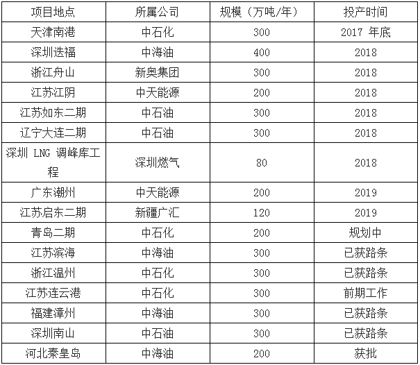 我國 LNG 投產(chǎn)計劃