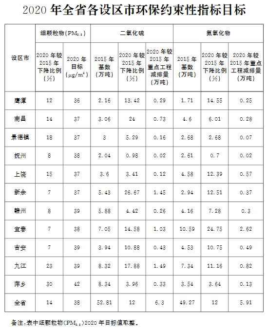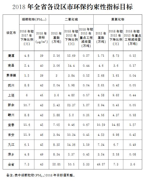 29.優(yōu)質(zhì)區(qū)域率先達標。南昌市、鷹潭市、景德鎮(zhèn)市作為全省大氣環(huán)境質(zhì)量較好的三個設區(qū)市,應進一步加大大氣污染防治力度,強化細化工作措施,力爭在2020年率先實現(xiàn)城市空氣質(zhì)量達標。(責任部門:南昌市、鷹潭市、景德鎮(zhèn)市政府)