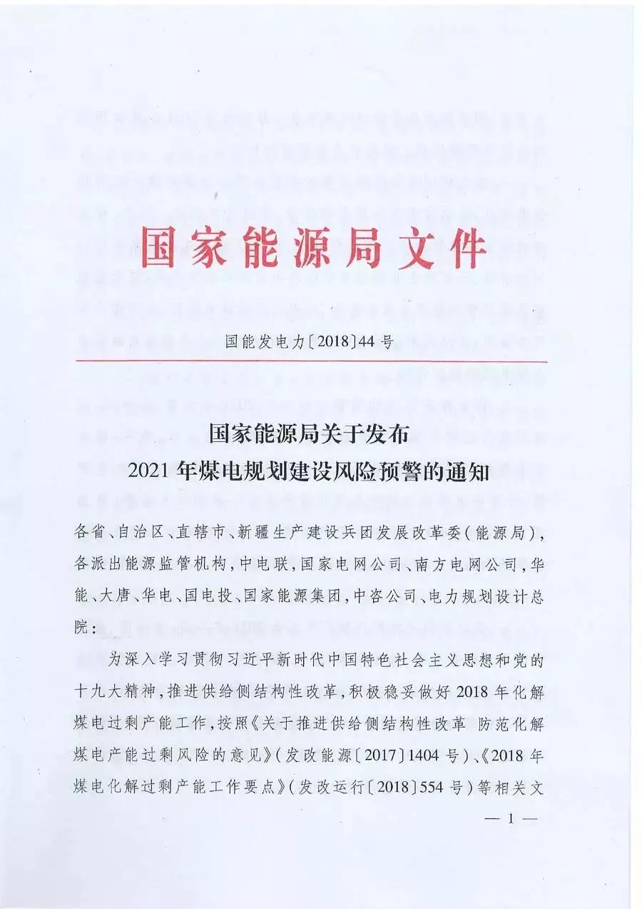 國(guó)家能源局發(fā)布2021年煤電規(guī)劃建設(shè)風(fēng)險(xiǎn)預(yù)警的通知,能源局預(yù)計(jì)到2021年,將有21個(gè)省份或地區(qū)的煤電產(chǎn)能過(guò)剩,并禁止這些地區(qū)建設(shè)新煤電項(xiàng)目