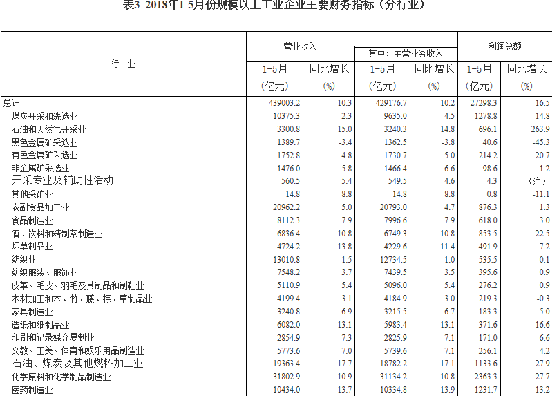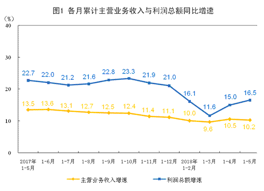 國家統(tǒng)計局6月27日發(fā)布的工業(yè)企業(yè)財務數據顯示,2018年1-5月份,全國規(guī)模以上工業(yè)企業(yè)利潤同比增長16.5%,增速比1-4月份加快1.5個百分點;其中,5月份增長21.1%,比4月份增速減緩0.8個百分點,延續(xù)了快速增長的勢頭。