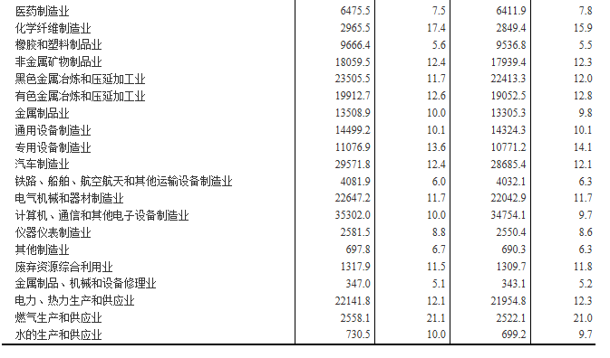 二、各項指標的同比增速和增量均按可比口徑計算,其結果與用上年所發(fā)布數據計算的結果存在差異,主要原因是:(一)統(tǒng)計單位范圍發(fā)生變化。每年有部分企業(yè)達到規(guī)模納入調查范圍,也有部分企業(yè)因規(guī)模變小退出調查范圍,還有新建投產企業(yè)、破產、注(吊)銷企業(yè)等影響。(二)根據國家統(tǒng)計局開展的企業(yè)組織結構調查情況,對企業(yè)集團(公司)跨地區(qū)、跨行業(yè)重復計算進行了剔重。(三)在“營改增”后,由于服務業(yè)稅負降低,部分工業(yè)企業(yè)將內部非工業(yè)生產經營活動剝離,轉向服務業(yè)。