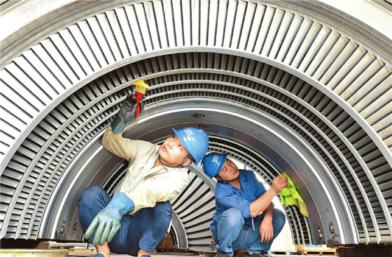 6月29日,在介休市,崇光發(fā)電有限責(zé)任公司介休2×35萬千瓦低熱值煤發(fā)電新建項目正在緊張施工中,兩臺機組計劃于明年6月30日投產(chǎn)發(fā)電。(劉通攝)