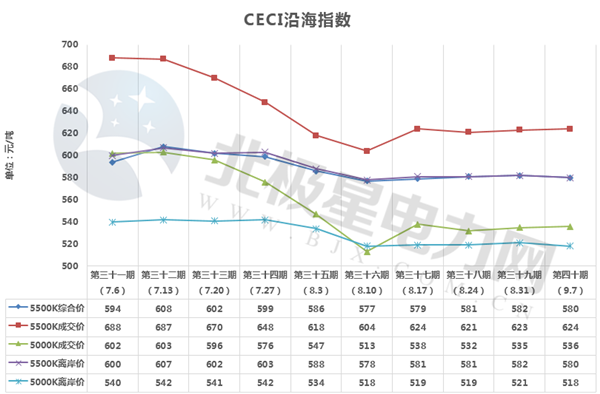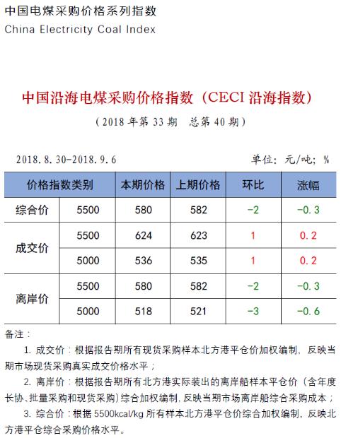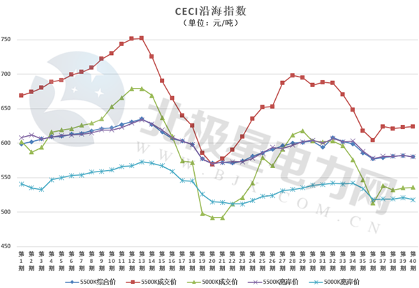 今日,中電聯(lián)公布中國(guó)沿海電煤采購(gòu)價(jià)格指數(shù)(CECI沿海指數(shù))第40期數(shù)據(jù):