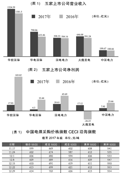 2017年,尤其是年底供暖季期間的高煤價(jià),對五大上市公司經(jīng)營造成巨大沖擊。各分析機(jī)構(gòu)紛紛寄望于煤電聯(lián)動(dòng)與煤價(jià)下跌,能拉動(dòng)各公司火電業(yè)績的復(fù)蘇。