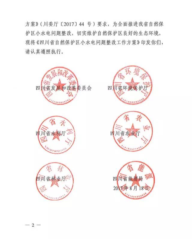 重磅丨《四川省自然保護區(qū)小水電問題整改工作方案》發(fā)布 整改任務于2018年6月30日前全面完成