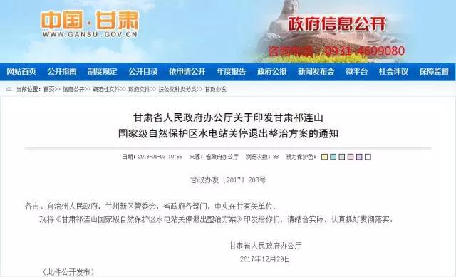 甘肅省政府日前印發(fā)了《甘肅祁連山國家級自然保護區(qū)水電站關(guān)停退出整治方案》,明確對甘肅省祁連山國家級自然保護區(qū)內(nèi)42座水電站采取差別化
