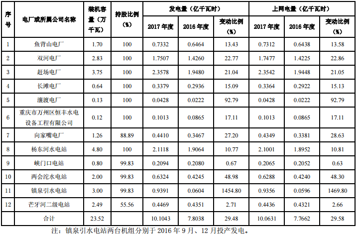 三峽水利2017年度發(fā)電量及上網(wǎng)電量完成情況公告