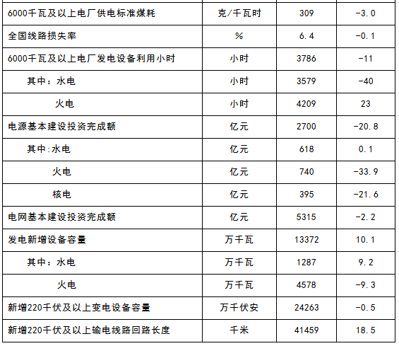 注:全社會用電量指標(biāo)是全口徑數(shù)據(jù),電源、電網(wǎng)基本建設(shè)投資為納入行業(yè)統(tǒng)計的大型電力企業(yè)完成數(shù)。