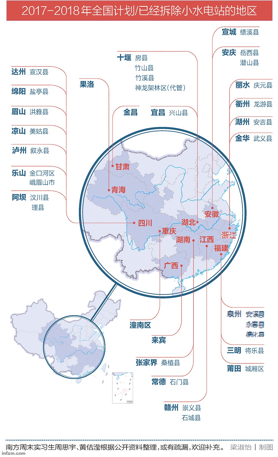 不只是長江經濟帶,自中央環(huán)保督察起,甘肅祁連山、福建、青海、廣西……2017-2018年,據(jù)南方周末記者不完全統(tǒng)計,目前全國已有11省份34個市縣正在對小水電關停、整頓,有的一個縣就關停了幾十座。