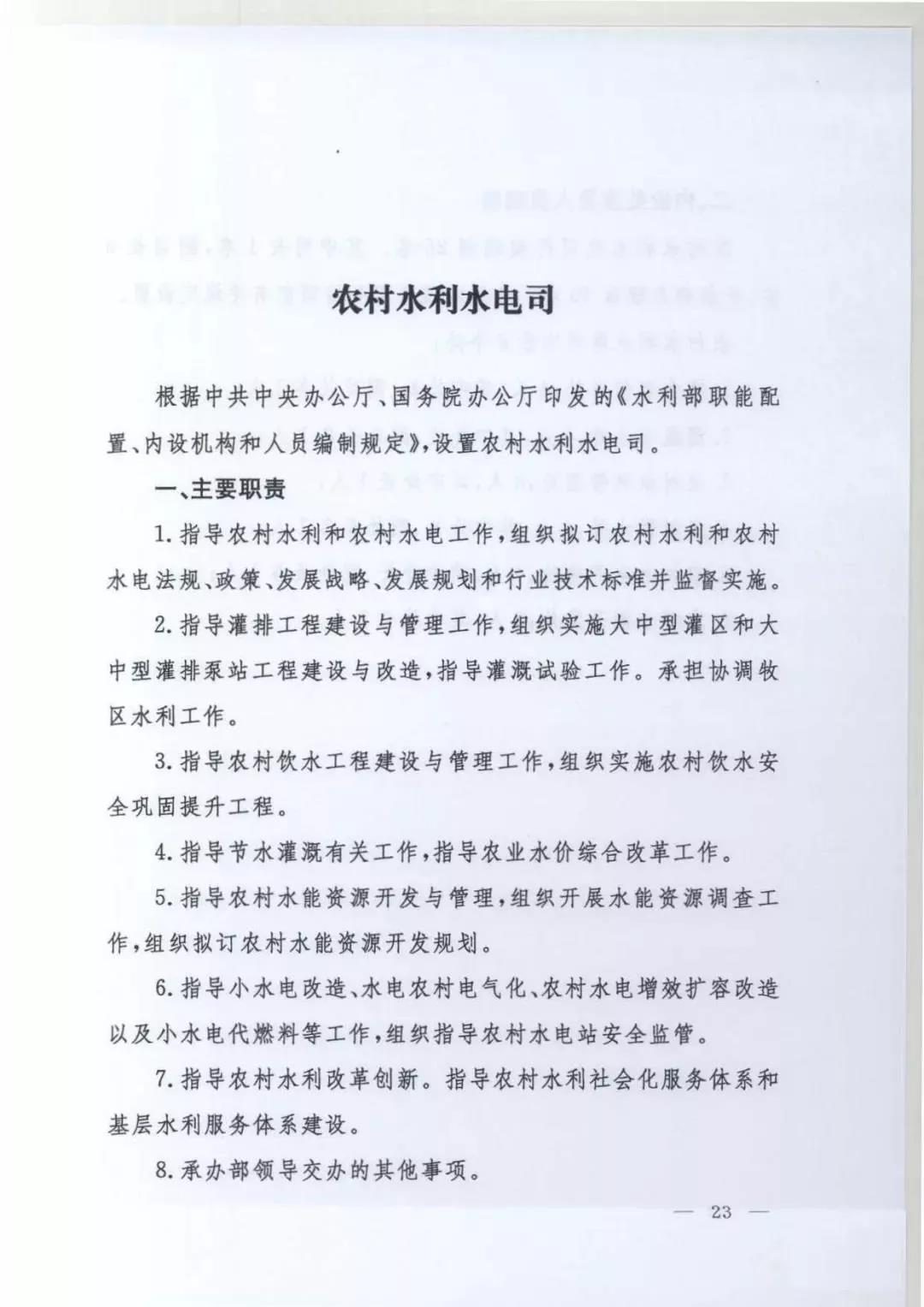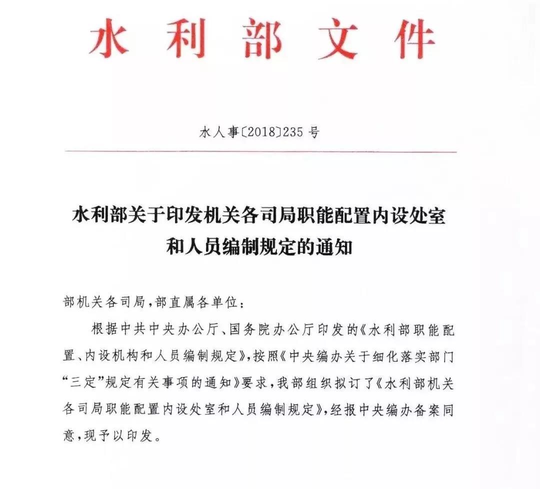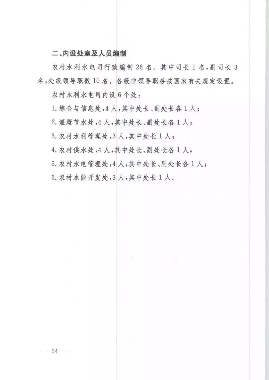 水利部“小三定”方案印發(fā),農(nóng)村水利水電司內(nèi)設(shè)6個(gè)處,行政編制26名