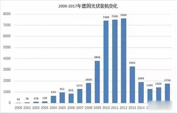2017年,中國(guó)光伏裝機(jī)量53吉瓦,超過(guò)德國(guó)20年來(lái)光伏裝機(jī)量的總和,比美國(guó)累計(jì)光伏裝機(jī)量?jī)H少一吉瓦多點(diǎn)。