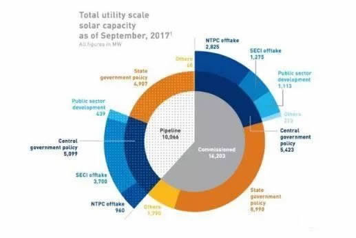 據(jù)我們知道,印度是個(gè)人口大國(guó),并以高科技以及廉價(jià)勞動(dòng)力而聞名世界,同時(shí)也是經(jīng)濟(jì)實(shí)力發(fā)展不平均以及生產(chǎn)力相對(duì)落后的國(guó)家,在一些地區(qū)用電困難以及用電成本過(guò)高,導(dǎo)致國(guó)民的生活質(zhì)量一直難以改善。這就為光伏發(fā)電在印度的推廣提供了契機(jī),加上光伏建設(shè)的成本大幅下降以及政府的重視,使得印度的光伏裝機(jī)量在2017年底累計(jì)裝機(jī)量已達(dá)接近20GW,成為一個(gè)光伏大國(guó)!