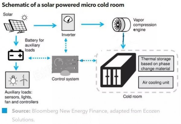 冷藏需求開始不斷為偏遠(yuǎn)地區(qū)的微電網(wǎng)創(chuàng)造新的機(jī)會(huì),有望為微電網(wǎng)帶來重要的潛在收入。由于缺乏冷鏈基礎(chǔ)設(shè)施,許多新興市場中的農(nóng)產(chǎn)品會(huì)在收獲后面臨嚴(yán)重?fù)p失,僅印度一國在這方面的損失就超過約140億美元。在冷藏需求無法滿足、電力供應(yīng)不足,及光伏電力具備價(jià)格優(yōu)勢的大環(huán)境下,一些下游光伏運(yùn)營商可能會(huì)迎來新的機(jī)會(huì)。
