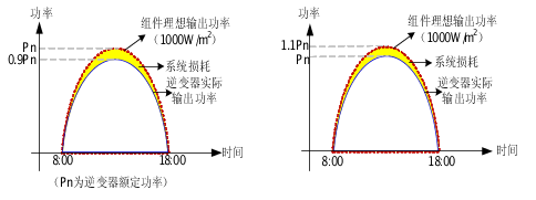 在組件容量和逆變器容量相等的情況下,由于客觀存在的各種損耗,逆變器實(shí)際輸出最大容量只有逆變器額定容量的90%左右。
