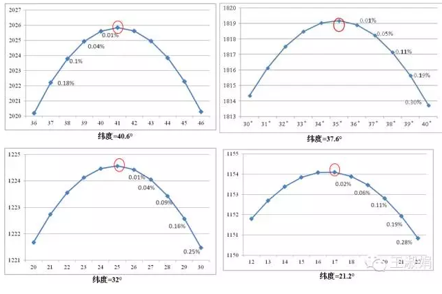 實際中作中,光伏陣列傾角一般取當?shù)鼐暥?,或比緯度?~5°。