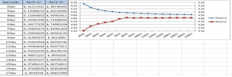 4. 在整個(gè)變阻過(guò)程中(由Isc-Voc或Voc-Isc)由幾百上千個(gè)I/V數(shù)據(jù)對(duì)組成,而高效電池的響應(yīng)時(shí)間若比I-V測(cè)試儀的脈沖寬度還長(zhǎng),在測(cè)量時(shí)間內(nèi)電荷的分布還遠(yuǎn)沒(méi)有達(dá)到平衡,因此,在最佳功率點(diǎn)Ipm*Vpm=Pmax的分布是非線性分布的。
