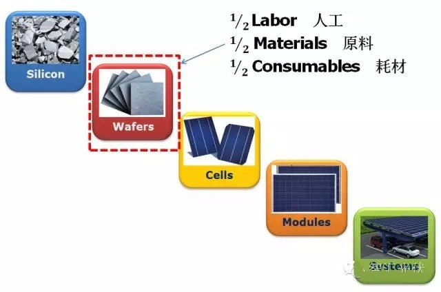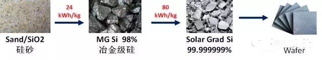 制作傳統(tǒng)硅片能耗的示意。