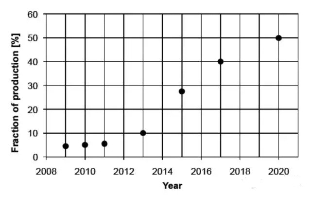 ITRPV 在2010年層預(yù)測(cè)N型和IBC電池到2016年會(huì)占據(jù)35% 的市場(chǎng)份額(如下圖)。而事實(shí)卻并非如此。