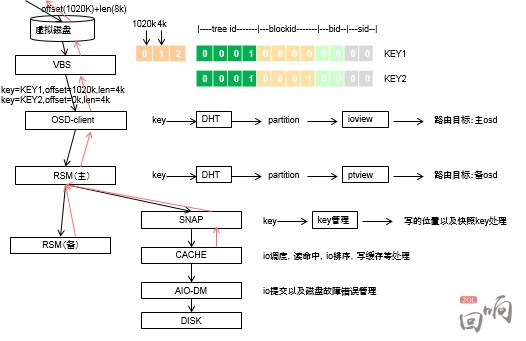 操作系統(tǒng)看到的連續(xù)的數(shù)據(jù)邏輯地址(LBA),實(shí)際上被打散到資源池內(nèi)所有硬盤上了,類似所有硬盤都做了raid0,這樣就利用了所有磁盤的性能,提高了存儲(chǔ)的性能。操作系統(tǒng)實(shí)際是直接讀寫物理磁盤的塊,并沒(méi)有封裝額外的文件系統(tǒng),是一個(gè)raw設(shè)備。