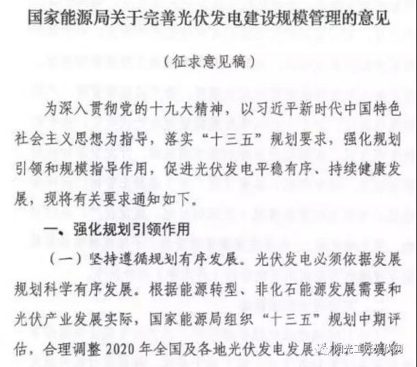 2018年4月13日,國家能源局發(fā)布《關(guān)于完善光伏發(fā)電建設(shè)規(guī)模管理的意見》。文件明確指出:對于需要納入國家補貼的光伏項目,均需納入國家或地方規(guī)模管理范圍。