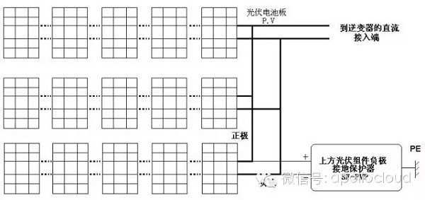 工作原理:針對(duì)P型組件,組串負(fù)極與地形成約300V-500V的電勢差,這個(gè)電勢差會(huì)持續(xù)導(dǎo)致組件表面的離子遷移;下圖是將逆變器負(fù)極通過熔絲加斷路器與地相連,這樣使組件負(fù)極對(duì)地電勢差抬升至0V左右,從而避免PID衰減。