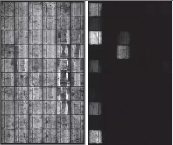 下圖是從某實(shí)驗(yàn)室提供經(jīng)過PID實(shí)驗(yàn)(196h)測試的組件,EL測試呈現(xiàn)的照片。