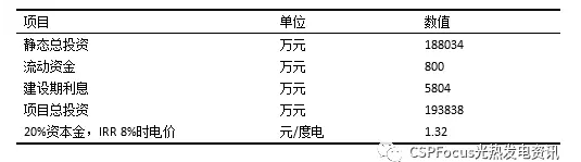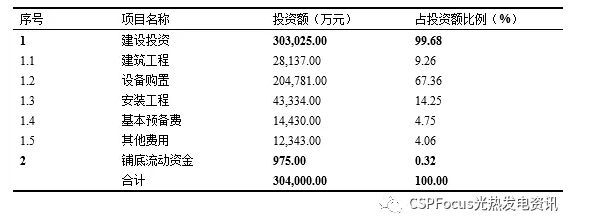 表:首航100MW熔鹽塔式項目投資構(gòu)成估算表