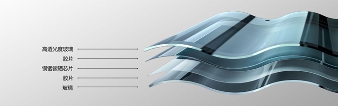 今天,漢瓦的問世改變了這一切。漢瓦將輕薄、高效、柔性的銅銦鎵硒(CIGS)薄膜太陽能芯片通過內外雙層的夾膠封裝工藝,精密封裝在高透光度玻璃內層中,既能最大限度地保持薄膜太陽能的高轉換率特性,又能滿足建筑的整體性和審美設計需求。