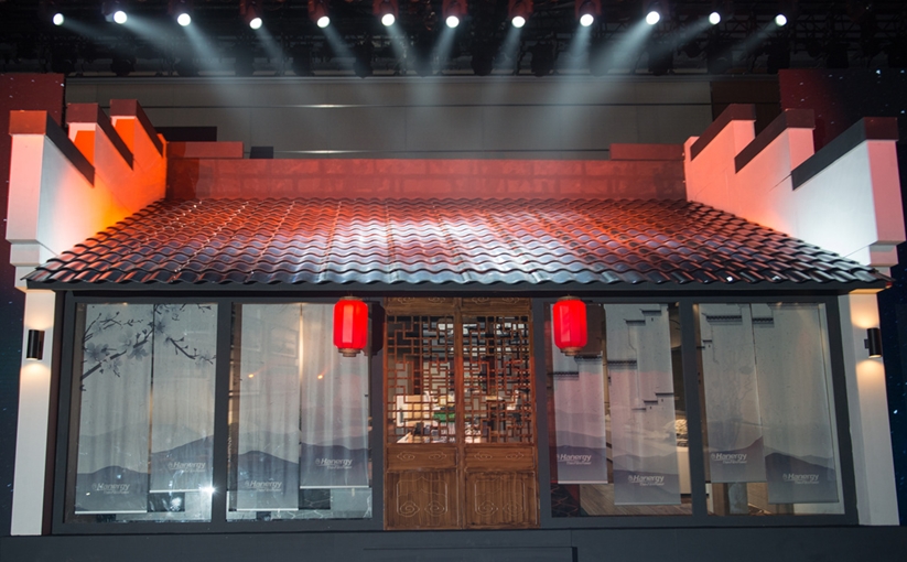 (發(fā)布會現(xiàn)場鋪設的漢瓦屋頂亮相)