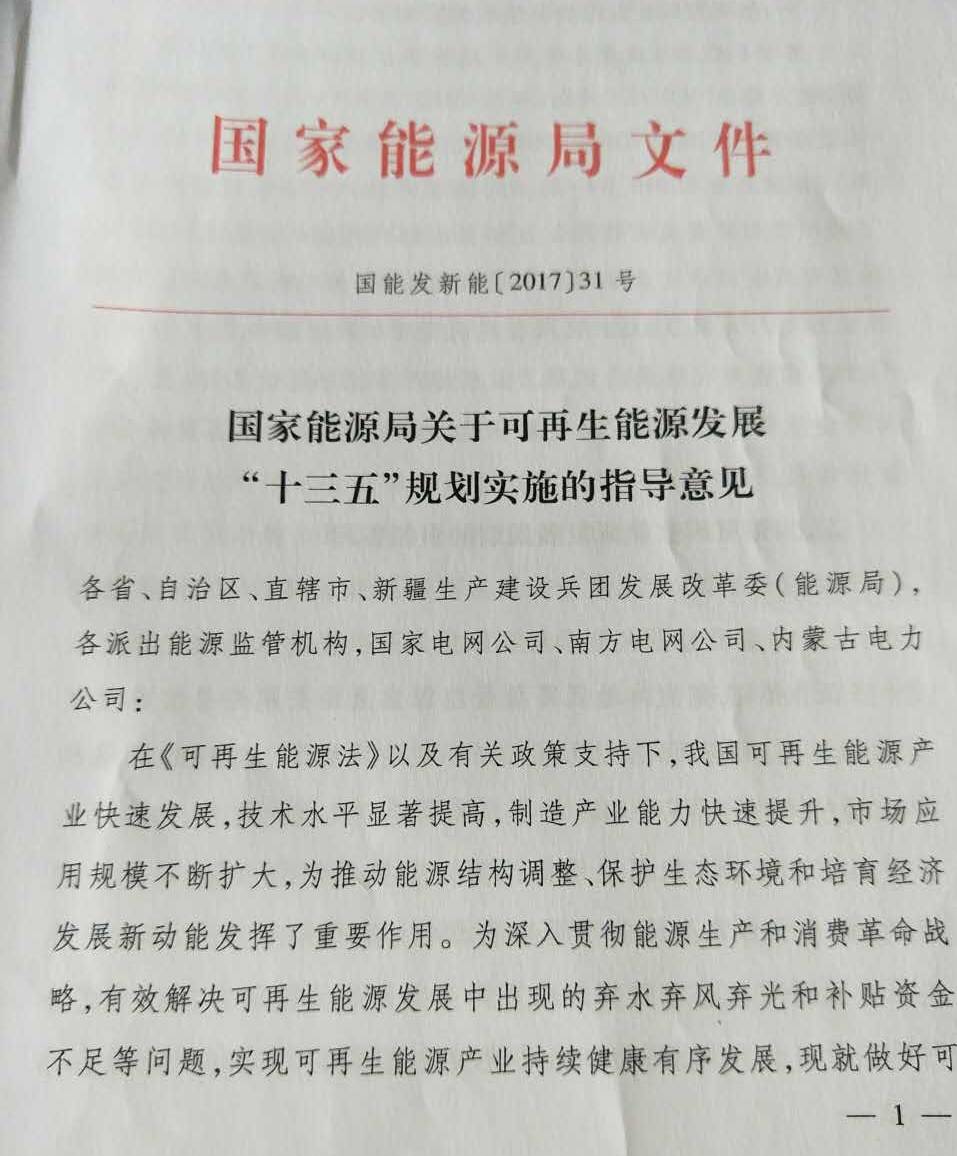 日前,國(guó)家能源局出臺(tái)《關(guān)于可再生能源發(fā)展十三五規(guī)劃實(shí)施的指導(dǎo)意見》,對(duì)十三五期間2017-2020年的光伏發(fā)展規(guī)模進(jìn)行了規(guī)劃,原文如下: