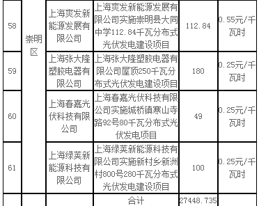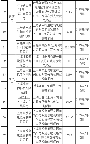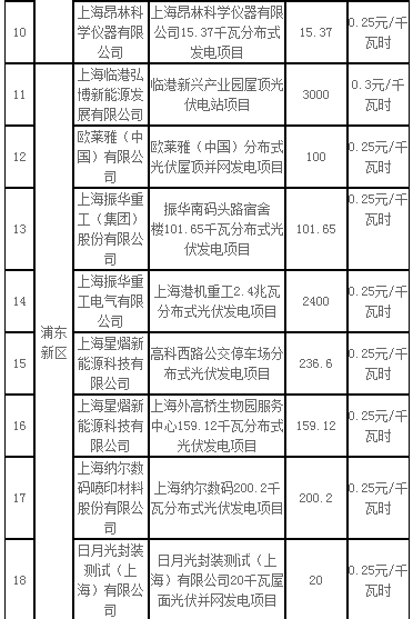 2017年第一批上海市可再生能源和新能源專項(xiàng)資金獎(jiǎng)勵(lì)項(xiàng)目表(光伏項(xiàng)目)