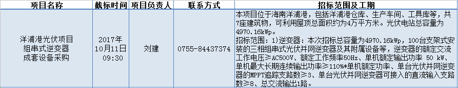 中廣核近日光伏項目招標(biāo)情況,涉及集中式逆變器、組串式逆變器、光伏組件、光伏支架、EPC總承包工程等,現(xiàn)將基本信息整理如下:相關(guān)供應(yīng)商資質(zhì)要求詳見下文:一、中廣核洋浦港光伏項目組串式逆變器成套設(shè)備投標(biāo)人