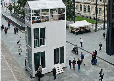 隨著世界各地城市房屋擁擠日趨嚴重,有些人認為把住房面積縮小會是一個解決方案。圖為Tikku被搬到赫爾辛基街頭,供行人參觀體驗。