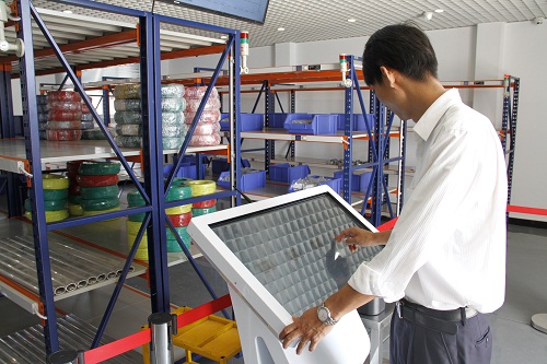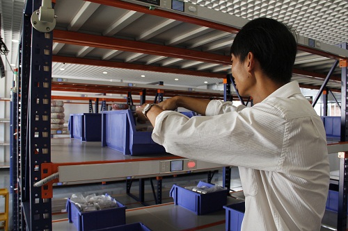 領(lǐng)料人員在聲光系統(tǒng)指引下到貨位取貨