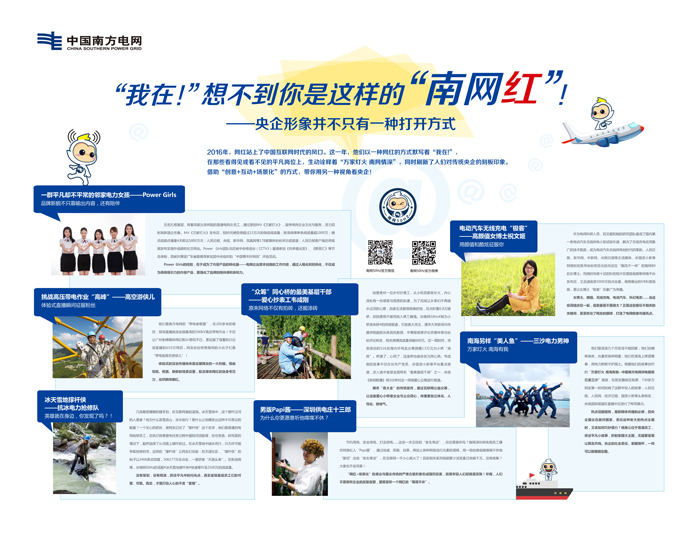 2016年,“網紅”成為互聯(lián)網創(chuàng)新的“風口”之一。南方電網公司緊緊把握“網紅”潮流,用互聯(lián)網的傳播思維,生動呈現(xiàn)基層員工的形象,講述他們的故事,推出一系列富有南網特色的“網紅”。