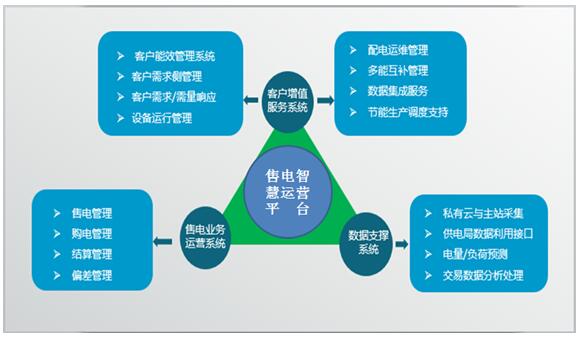 產(chǎn)品整體解決方案由售電業(yè)務(wù)運營系統(tǒng)、數(shù)據(jù)支持系統(tǒng)(數(shù)據(jù)中心)和客戶增值服務(wù)系統(tǒng)三部分組成售電智慧運營平臺。產(chǎn)品的推出和應(yīng)用按照分階段分版本的方式進行,售電業(yè)務(wù)運營系統(tǒng)和數(shù)據(jù)支持系統(tǒng)是基礎(chǔ)應(yīng)用,是面向所有售電公司的核心業(yè)務(wù)應(yīng)用,客戶增值服務(wù)系統(tǒng)為售電公司增值業(yè)務(wù)的開展按需提供或擴展。